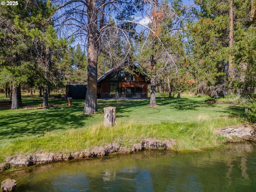 A river flows alongside this unique property! This is a rare opportunity to own a small cabin on the Deschutes River, or you can enhance the property and create your dream riverfront home. The cabin features a 1-bedroom, 1-bathroom layout with high-end finishes, including granite countertops, stainless steel appliances, vaulted ceilings, and hardwood floors on the main level. Additional highlights include a loft and a spacious great room with a wood stove. The property offers a beautiful park-like setting, perfect for enjoying the outdoors. There is a generous deck for entertaining and a private dock on the Deschutes River, ideal for fishing or relaxing with an afternoon float. This remodeled cabin sits on over 1.5 acres of prime Deschutes riverfront, just minutes away from Sunriver, Caldera Springs, and Crosswater. Large riverfront parcels with these features and proximity to resort amenities are rare to find.