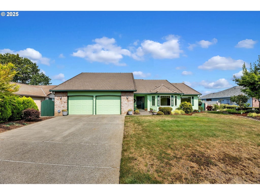 One level Ranch Home - MOVE IN READY! This 2,226 sqft, 3 bedrooms, 2 full bathrooms offers vaulted ceilings and office/den with skylights. The heart of the home features a gas fireplace and a large kitchen with quartz countertops and built-in stainless-steel appliances. The expansive primary suite includes two walk-in closets, a walk-in shower, and a walk-in tub with double vanity sinks. Convenience meets style in the laundry room featuring built-in cabinetry and a folding table. Enjoy outdoor living on the large stamped concrete patio with space for gardening. Experience the comfort and elegance of this well-appointed home.