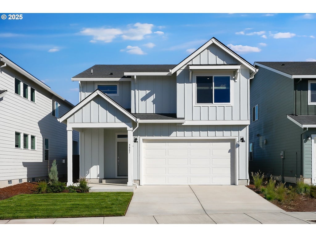 This new construction home is located in a serene community surrounded by protected wetlands and walking distance to several local parks and trails, with easy access to Fern Ridge Lake, grocery stores, schools, and restaurants. The Cypress plan features a flexible layout with an open main floor connecting the kitchen, dining room, and fireplace-warmed great room to the back patio. Upstairs, three bedrooms surround a spacious bonus room, while the primary suite includes a large walk-in closet and spa-inspired primary bath with soaking tub. Interior highlights include quartz countertops, shaker-style cabinets, LVP flooring in the kitchen and entry, LVT flooring in the baths, two-tone interior paint, fencing, and landscaping with irrigation. This home also includes central air conditioning, a refrigerator, washer and dryer, and blinds—all at no extra cost! Located on homesite 96, this home is move in ready. Rendering is artist conception only. Photos are of a similar home, features and finishes will vary. Below-market rate incentives available when financing with preferred lender.