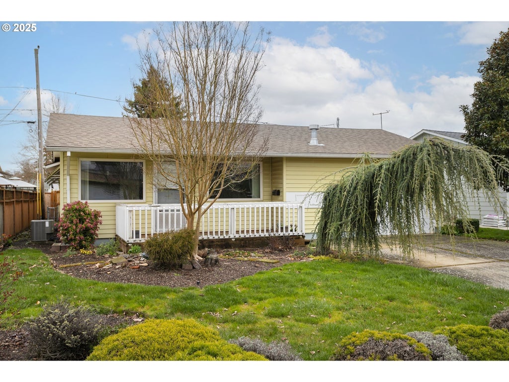 Welcome to this beautifully maintained 2-bedroom, 1.5-bathroom home in the highly sought-after Woodburn Senior Estates, a 55+ community offering an active and welcoming lifestyle. With 1,203 sq. ft. of thoughtfully designed living space, this single-level residence has been updated for modern comfort while retaining its classic charm.Step inside to discover newly refinished hardwood floors that bring warmth and elegance to the main living areas. The spacious living room features a cozy gas fireplace with built-in cabinetry, perfect for relaxing evenings. Large windows invite natural light, creating a bright and airy ambiance. The adjoining dining area flows seamlessly into the well-equipped kitchen, offering ample cabinetry and counter space.Both bedrooms provide generous space, with the primary suite featuring brand-new plush carpet for added comfort. The primary also boasts a walk-in closet and easy access to the full bathroom. The second bedroom includes sliding glass doors leading to a versatile enclosed sunroom, ideal for year-round relaxation or a hobby space. A convenient half bath is available for guests.Additional highlights include a dedicated laundry room with built-in storage, an attached garage for parking and extra storage, and a private backyard with lush landscaping and a covered patio—perfect for enjoying morning coffee or evening gatherings.Woodburn Senior Estates offers exceptional amenities, including a golf course, clubhouse, swimming pool, and social activities to keep residents engaged and active. Conveniently located near shopping, dining, and medical facilities, this home provides both tranquility and accessibility.Don’t miss this move-in-ready gem—schedule your tour today!