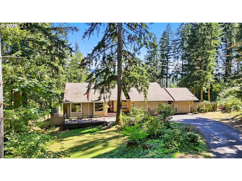 Welcome to your peaceful sanctuary in the hills of Battle Ground. This beautifully updated 3-bedroom, 3-bath home sits on 2.5 acres of usable land with stunning territorial and valley views from nearly every window. Thoughtfully designed for comfort and flexibility, this property offers space to live, grow, and thrive—just minutes from downtown and under 40 minutes to PDX. The vaulted primary suite features panoramic windows and breathtaking sunrises. The gorgeous kitchen boasts granite counters, stainless steel appliances, new hardwood flooring, and designer touches. A daylight basement with a private entrance is perfect for multigenerational living, a guest suite, or future ADU potential. Enjoy cozy evenings by the wood-burning fireplace and take advantage of the massive storage area for hobbies or expansion. The 3rd bay of the garage has great potential for a shop - all ready for your boat or other toys. Outdoor living shines with a covered dining area, view deck, tranquil water feature, and a hot tub that stays with the home. A greenhouse, chicken coop, and garden beds make this property truly homestead-ready. Of note is a 32-panel, grid-tied solar system (9kW)—a great way to save on your utility bill! A rare combination of views, versatility, and value—this is country living at its finest.
