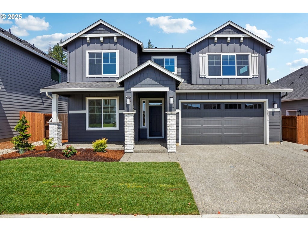 Welcome to the Whidbey in Si Ellen Farms! This home offers 2,604 sq. ft, 4 bedrooms plus a main-floor den/office, 2.5 baths, and a 3-car tandem garage. The main floor has a roomy open layout with LVP flooring throughout, large great room and a spacious dining area. The well-appointed chef's kitchen has designer selected finishes including upgraded appliances, a huge island perfect for entertaining, quartz slab countertops, a custom range hood, upgraded lighting, and to-the-ceiling oak cabinets. Enjoy year-round outdoor living with a covered patio area and fully landscaped backyard.The upstairs owner's retreat is the perfect place to unwind and the large bedroom is complimented by a walk-in closet and luxurious bathroom with a dual vanity, soaking tub, and a fully tiled shower. Three additional bedrooms and a large laundry room equipped with a utility sink and storage cabinets for added convenience.Built for superior quality, comfort and efficiency, this all-electric home is EnergyStar NEXTGEN Certified. The 3-car garage is ready for an electric vehicle with a dedicated 50 amp fast charger outlet. Sleep even more soundly at night with a 2-year warranty and a 10-year structural warranty.