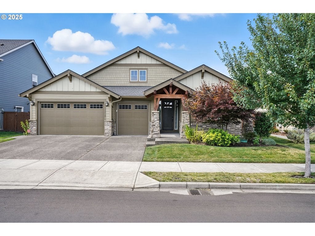 Your dream of effortless one-level living starts here! With 2,380 sq ft, 3 bedrooms, 2.5 baths, and a small office off the great room, it’s designed for everyday comfort and convenience. Soaring ceilings and walls of windows fill the open layout with light. The spa-like primary suite features dual sinks, makeup vanity, tiled walk-in shower, and huge walk-in closet. The heart of the home is the great room with a cozy gas fireplace, across from the chef’s kitchen featuring quartz counters, oversized island with eating bar, pantry, double ovens, convection oven, gas range, built-in microwave, stainless-steel appliances, and built-in dishwasher. Indoor-outdoor living flows seamlessly to the private covered patio. Additional highlights: central air, tankless gas water heater, ENERGY STAR furnace, oversized 3-car garage with opener, laundry room with sink, fenced yard with sprinklers, and manicured landscaping. And the best part? It’s all tucked into Herzog Farm, one of Vancouver’s most desirable neighborhoods. Don't miss this one, it will go fast!