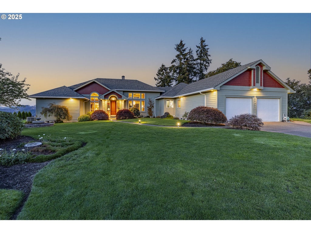 Experience peaceful country living on over 60 acres in a picturesque valley! This lovely single-level home sits on a hilltop overlooking the property, providing panoramic views and stunning sunsets. As you approach the house, you will find the beautifully landscaped and maintained grounds surrounding the home. The main entry features tile floors and high ceilings; it leads to a formal living room with a fireplace, soaring ceilings and numerous windows with views of the sprawling property. An updated kitchen features stainless steel appliances, granite counters, a large island, and ample prep and storage space. The adjacent eating area opens to a family room with a cozy woodstove. The formal dining room is perfect for special occasions. Enjoy the comfort and convenience of a primary bedroom suite offering a jetted tub, separate walk-in shower, and dual walk-in closets. Much of the living area boasts beautiful Brazilian cherry floors. Relax and enjoy the gorgeous views from the covered patio. Large pastures make this property great for horses or cattle. The front 30 acres produces 30-50 tons (200 round bails) of hay annually. 50'x50' metal barn and 24'x36' hay barn. Close to the home is a 28'x50' shop with a bathroom, hot water, insulation and a woodstove for heat. Insulated 20'x45' RV storage with power available. Two-car attached garage. Underground 1,500 gallon holding tank plus two additional 2,500 gallon tanks for yard irrigation. A rare find!