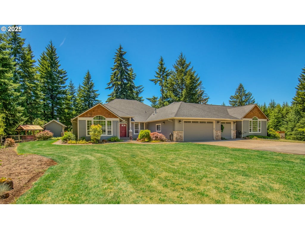Remarkable, and truly a rare find! Nestled on 20+ acres, this thoughtfully designed, custom-built masterpiece features a stunning one-level main home plus attached ADU with private entrance and includes all the bells and whistles. It's really two homes in one! The main home boasts an amazing floorplan and gorgeous details throughout. No expense was spared in the freshly remodeled quartz-island kitchen with top-of-the-line Viking appliances, updated doors, trim, flooring, plantation shutters and brand new 50yr roof. The ADU will impress with vaulted ceilings, large kitchen, ensuite primary, laundry room and entirely separate living. Outside you'll find an entertainer's dream; covered patio, wet bar, hot tub, expansive decks, outdoor dining and more. In-ground pool boasts outdoor hot/cold shower and Aquamatic hydraulic pool cover, keeping your pool clean and child-safe throughout the year. Extensive trail system with nearly 1 mile of meandering, groomed paths is ready for the outdoor enthusiasts and perfect for horses, dirt bikes or a relaxing stroll through your own private domain. Other features include 48x40 shop, 40x22 covered RV storage with hookups, extensive lean-tos, tool sheds, dog run/kennel, and backup generator panel. Easy commute through the quiet countryside with quick access to Hwy 26, and a short trip to shopping and major employers. Plus there's trash service and a school bus stop right at your driveway. With multiple outbuildings, mature trees, outstanding views and unparalleled privacy, this truly is your own slice of paradise. Come see it today!
