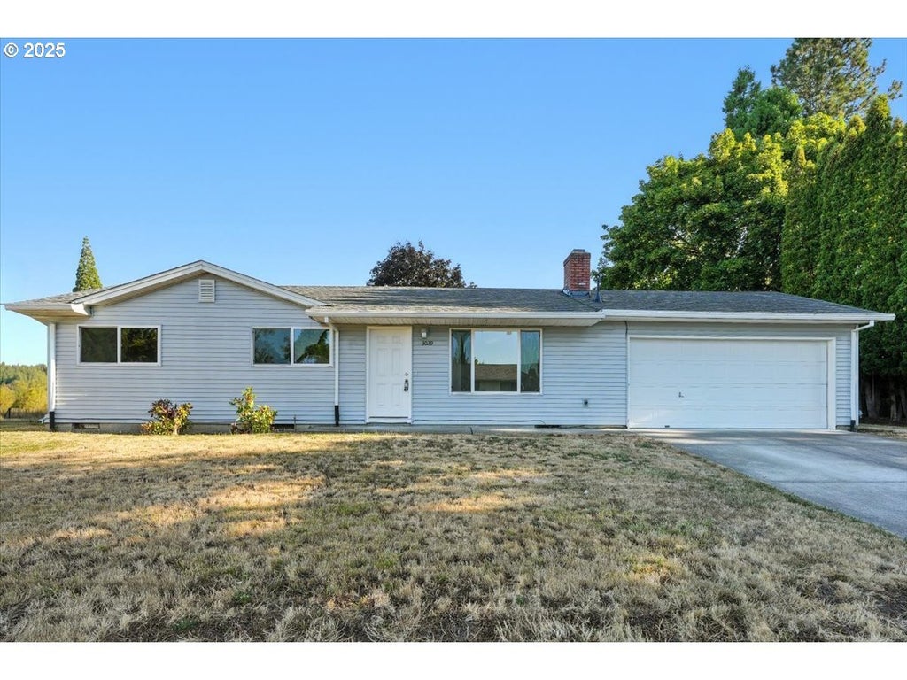 Great starter with an amazing Home Energy Score of 7! Enjoy spacious rooms, nice updated flooring, Oak style cabinetry, gas heat, and an oversized 2 car garage (528 sq. ft!). The lot is expansive, flat, and sunny with a few mature trees and beds. It is ready for a green thumb who loves to garden! This home has affordable gas heat and a nice furnace, a composition roof, three large bedrooms, and a hallway bathroom. Call for your tour today! Offers reviewed after 9/15/2025. [Home Energy Score = 7. HES Report at https://rpt.greenbuildingregistry.com/hes/OR10238989]