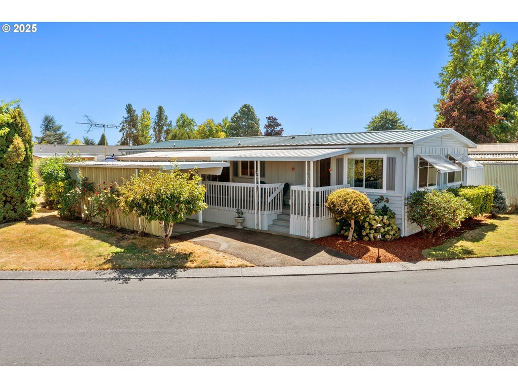 Space #43 - Spacious 1,440 sq ft open floor plan, move-in ready 2 Bed, 2 Bath home with fresh interior paint, new LVP flooring, and upgraded windows (Dec 2024). Major updates in 2023 include gas furnace, heat pump, and gas water heater. Energy efficient with insulated crawl space and ceilings, plus sealed heat ducts. Outdoor features include a large front porch, back deck, and storage shed.