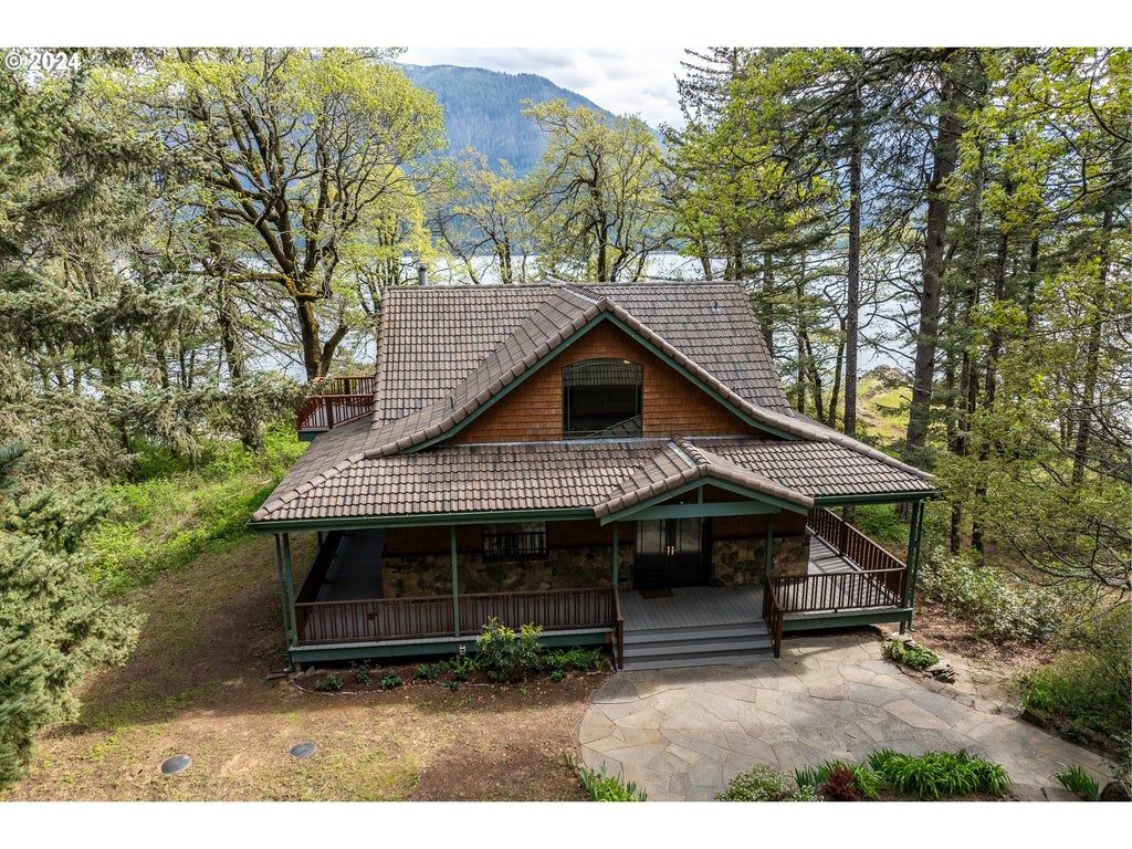 One-of-a-kind waterfront property in the heart of the Gorge Scenic Area! Welcome to your own private paradise! Bordered to the south by the Columbia River, this property boasts an expansive beach and multiple inlets along 750+ feet of private waterfront. The beautiful year-round Carson Creek flows through the lush, forested acreage, providing a habitat for abundant wildlife. Just steps from the water lies a custom-built home offering stunning sunrise-to-sunset views. The home features stone siding quarried on-site and a covered wrap-around porch, inviting you to relax and enjoy the serene surroundings. Main Level Features: beamed ceilings, Australian Cypress floors, open-concept living area with a custom fireplace. Upstairs Features: large picture windows, private balcony off the second bedroom, cozy bathroom with walk-in shower and garden tub. In addition, a detached guest house provides privacy for visitors, complete with a walk-in closet, bathroom, loft, and fireplace. Enjoy the abundant wildlife and breathtaking views from your private beach, explore the creek bed, or take advantage of river access as a watersports launch site. This property truly offers something for everyone. Located in the Columbia Gorge National Scenic Area. Buyer due diligence is recommended for any improvements or changes.