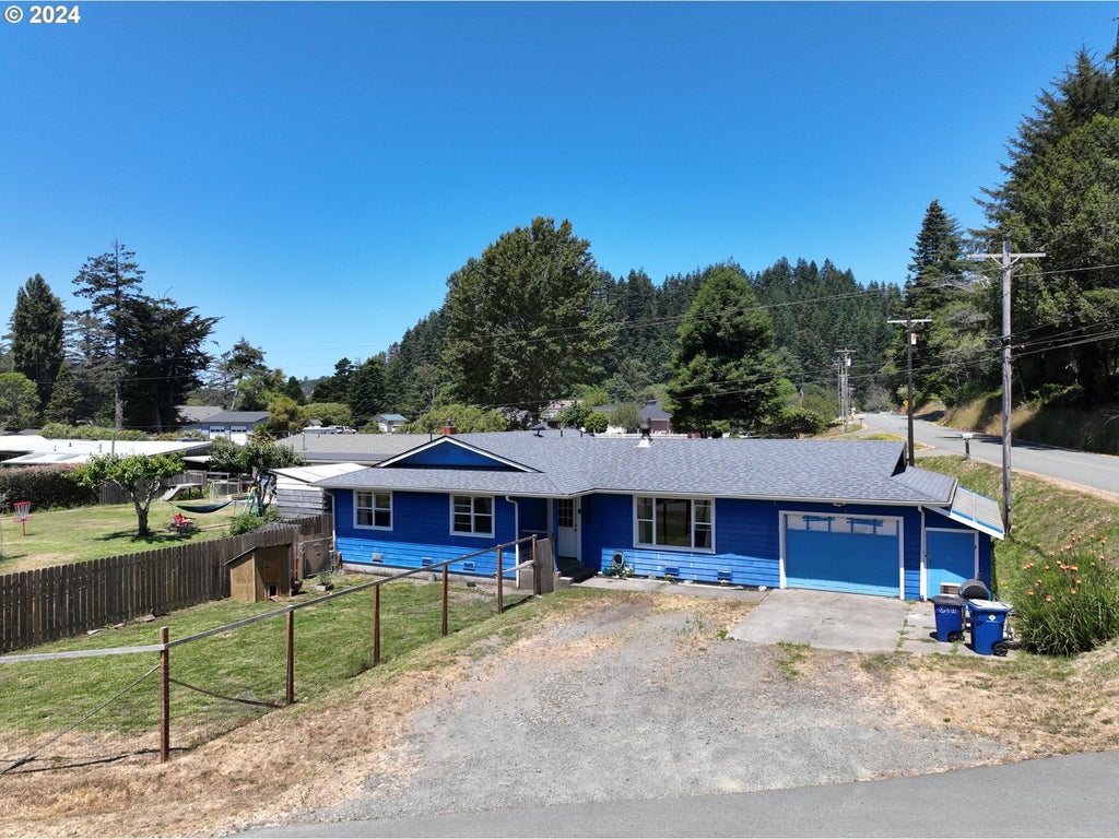 This beautifully updated single-level ranch-style home perfectly blends modern comfort and timeless charm. The interior is stylish and low-maintenance, and the floors are durable, laminate, and tile. The fully renovated kitchen is a standout, equipped with sleek stainless steel appliances that make meal preparation a joy.With three spacious bedrooms and two tastefully updated bathrooms, this home provides ample room for family, guests, or a dedicated home office. Sitting on over a third of an acre, the property offers plenty of outdoor space for recreation, gardening, or simply relaxing. The fully fenced backyard is ideal for pets and entertaining, with a large shed for additional storage.This well-maintained home has a newer roof and septic system, offering peace of mind for years to come. Situated on a level corner lot, it enjoys a prime location just minutes from downtown Gold Beach, where you’ll find local beaches, shopping, schools, and an array of dining options.Don’t miss out!