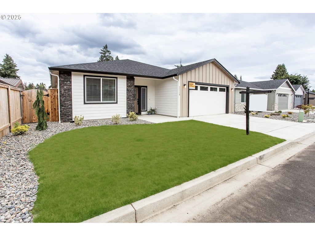 Welcome to Songbird Gardens in the desirable Felida Neighborhood, designed for comfort, accessibility, and low-maintenance living. This 2,170 sq. ft. home features wide doorways and hallways, making mobility easier and move-in day a breeze. The chef’s kitchen has soft-close white cabinets, quartz countertops, and upgraded appliances. Luxury vinyl flooring in the main living area adds durability and easy upkeep. Filled with natural light, the spacious great room features large windows, a cozy LED fireplace, and built-ins for storage. The primary suite offers a fully tiled walk-in shower and quartz countertops in both bathrooms. Smart home features include keyless entry, pre-wired CAT-6, and a media hub for modern convenience. Enjoy the East side covered patio with your morning coffee and the refreshing coolness in the heat of summer. Always included is a fully landscaped and fenced yard, and finished garage, completely removing those pesky big honey-do's after moving in. Builder’s preferred lenders offer buyer credits to knock down your interest rate or assist with closing cost. Bright, open, and designed for easy living—schedule your tour today!