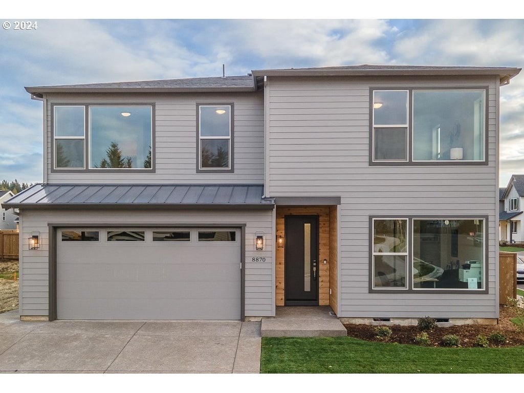 This open great room plan features generous living space appointed with shaker style mission cabinetry, slab quartz countertops with undermount sinks, a floating gas fireplace with stained box beam mantle, luxury vinyl flooring and Whirlpool stainless steel appliances. The main level features a bedroom/den with closet and a full bath. Upstairs you will find a spacious primary suite with dual walk-in closets and adjoining bath with all tile shower and soaking tub plus 3 additional bedrooms and a large bonus. Earth Advantage Certified! Builder incentive available!