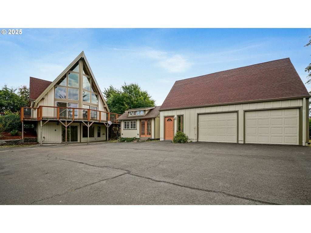 Full of charm & character, this unique Mt. Angel home features soaring windows & wood-slatted high ceilings that create a bright, open feel. Main lvl boasts wood floors & cozy loft bdrm w/ fireplace. Lower lvl includes a family room, full bath & bonus space perfect for hobby or playroom, use your imagination! 3rd bdrm is in separate ADU—ideal for guests or rental income. Large lot with plenty of space for outdoor enjoyment. Enjoy small-town living w/ nearby parks, shops & wineries in a prime location!
