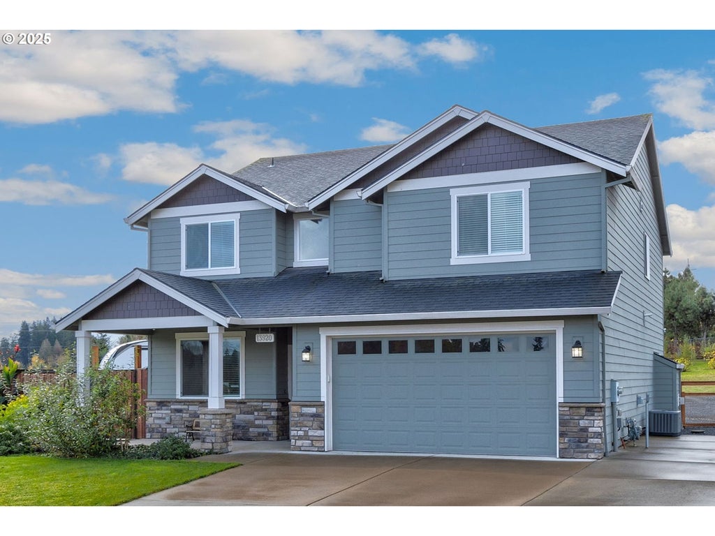 Experience custom luxury on two pristine acres. Completed in 2019, this 2,507 sq. ft. residence seamlessly blends elegance and function. The main floor, adorned with engineered hardwoods, features a main-level office and a stunning great room with a gas fireplace, crown molding, and rope lighting. The heart of the home is the gourmet kitchen, boasting quartz countertops, an island, premium stainless steel appliances, and a walk-in pantry.Retreat to the luxurious primary suite, which offers a large walk-in closet, a soaker tub, a separate shower, and dual quartz vanities. Outside, enjoy the covered patio, beautifully landscaped garden, and mature fruit trees.The property’s amenities are unmatched: an attached 2-car garage, dedicated RV parking with an electric hookup, and a spectacular detached 2,484 sq. ft. shop. This incredible space features 24-foot ceilings, a full bathroom with a tiled shower, a tankless water heater, and abundant room for all your vehicles and toys. This isn't just a home; it's a lifestyle.