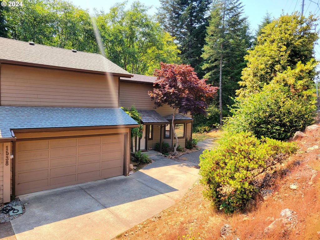 2 Bed Townhouse style Home in the Harris Heights planned community! Only half of a mile from infamous Harris Beach, this would make a great second home or primary residence. A covered porch awaits you, walk in and you are greeted with plenty of natural light and vaulted ceilings to really open up the space and make you feel at Home. Ceiling fans throughout and ductless heat pumps to add to your comfort, air conditioning for those warmer days in Brookings. Bedroom on main floor with slider to a covered balcony. Upstairs bedroom separate from guests offers a walk-in closet and it's own ensuite bathroom with walk-in shower. Spacious two car garage with extra storage. Nice private backyard area to enjoy the outdoors with little to no maintenance. HOA of only $275/month takes care of landscaping and exterior paint. Call today for your private or virtual tour!