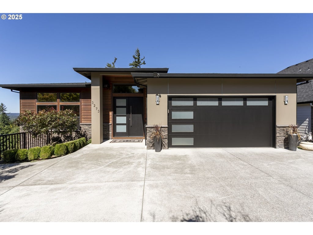Experience elevated living with the perfect blend of privacy, luxury, and unforgettable views in this custom-built contemporary masterpiece. Perfectly positioned to capture the Washougal foothills and vibrant sunsets, this home is designed for those who appreciate style, comfort, and effortless living. The 12’ ceilings and panoramic windows fill the great room with tons of natural light, while wide-plank wood floors and a modern gas fireplace create warmth and sophistication. Privacy glass on the south, east, and west-facing windows ensures comfort and seclusion year-round. The gourmet kitchen is equipped with quartz countertops, upgraded appliances, a walk-in pantry, and large dining space — perfect for cooking and entertaining. Step out onto one of two cedar-covered decks with modern railing systems and built-in lighting, to soak in the views year-round. Retreat to the main-level primary suite with its spa-like bathroom, custom walk-in closet, and private laundry closet. A dedicated office (or 4th bedroom) and stylish full guest bath complete the main level. Downstairs, a spacious family room is plumbed for a wet bar or kitchenette, with a second laundry room and space for a home gym — ideal for multi-generational living or an ADU conversion. There’s even potential to add two more bedrooms downstairs! Custom Milgard windows, remote-controlled blackout and UV blinds, upgraded plumbing and HVAC, and $10K in professional low-maintenance landscaping make this home as functional as it is beautiful. Just minutes from downtown Washougal and the new waterfront, this one-of-a-kind home offers peace, privacy, and convenience all in one. Your dream home awaits!