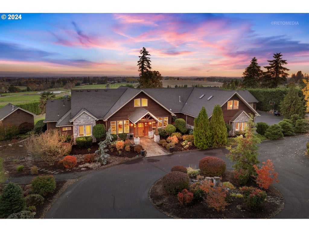 This exceptional craftsman estate, nestled on 3.15 private acres, boasts unparalleled outdoor living, a versatile outbuilding and breathtaking valley views! An entertainer’s paradise or private resort-like retreat, it’s ideal for year-round relaxation and recreation. With four en-suite bedrooms and five full bathrooms, this home showcases high-quality construction and timeless craftsmanship offering the perfect blend of comfort, luxury and functionality. The vaulted two-story foyer leads into the expansive living room, where a soaring custom wood ceiling and a stunning wall of windows frame serene territorial views. A floor-to-ceiling stone fireplace, flanked by custom cabinetry, creates a warm, inviting atmosphere. The gourmet kitchen is a chef’s dream, featuring a large slab granite island, Wolf double oven range, Sub-Zero refrigerator and a convenient butler’s pantry. The formal dining area with a triple crown-molded ceiling is perfect for hosting. Expansive sliding doors off the great room open to your private outdoor oasis with a sparkling pool, pool house, hot tub and tennis court. The south-facing extended patio offers seamless indoor-outdoor living! The luxurious primary suite includes a private covered patio, wood-paneled ceiling and a beautiful stone fireplace. The spa-inspired bathroom boasts a spacious tiled shower, jacuzzi tub and dual walk-in closets. Three additional spacious en-suite bedrooms are also located on the main level. Upstairs, there’s a generous bonus room with vaulted ceilings! A staircase from the four-car garage leads to a lower-level wine cellar. Outside, the meticulously landscaped grounds feature an incredible garden area with raised beds, a peaceful swing and a fenced-in “chicken palace.” A 1,212 SF shop with three garage doors, electricity and water offers endless possibilities. This private retreat delivers the tranquility of country living with convenient proximity to I-5, I-205, shopping, schools and restaurants!