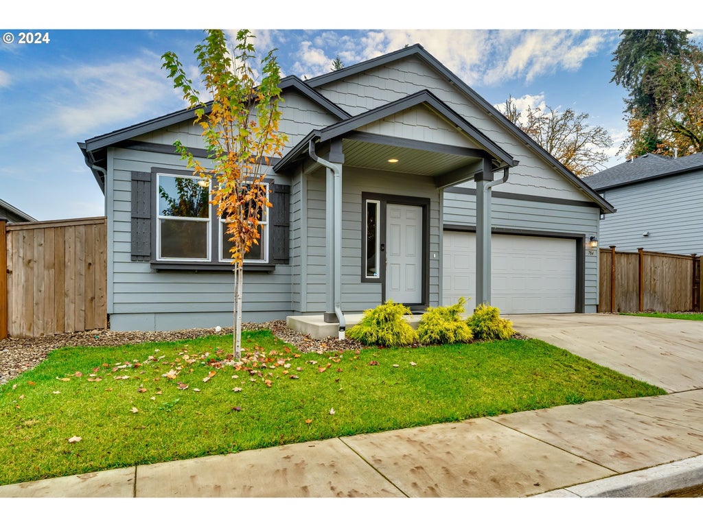 You found it! This 2022 "like new" home is in immaculate condition and offers a modern, open-concept design perfect for comfortable living. The custom-designed kitchen features a breakfast bar, ample counter space, and a pantry, all overlooking the spacious dining and living areas with soaring vaulted ceilings. The large primary bedroom is a peaceful retreat with an en-suite bathroom and a generous walk-in closet. The barely used front bedroom provides flexibility, ideal as a home office-den- or bedroom, based on your needs. A well-appointed main bathroom sits conveniently between the bedrooms, just off the welcoming entry hall that leads into the heart of the home. Step outside to enjoy a fully landscaped yard with a fenced backyard, perfect for pets, children, or outdoor entertaining. A large, two-car garage offers additional storage space or parking. Move-in ready and beautifully maintained, this home is the perfect blend of style, function, and comfort. Don’t miss out on this fantastic opportunity!