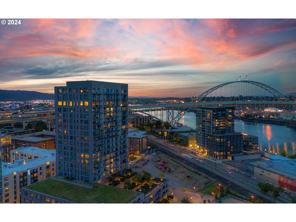 The Penthouse at The Vista offers luxurious, panoramic views of Portland's Pearl District, Willamette River, and Mt Hood. Here, nothing escapes the touch of luxury. From 11’ ceilings to white oak floors, this is thoughtfully designed 2,715sf of functional & fashionable living. Large windows illuminate the warm and neutral tones of even the dreariest of winter days flooding the space with natural light. The open floor plan is sure to please the entertainer with plenty of seating areas, gas fireplace, and a cooks kitchen complete with quartz counter tops as well as Wolf and SubZero appliances. Two oversized, private terraces grace each end of the home. The residence includes a luxurious primary suite, an office/den/guest suite, and an additional bedroom suite, all designed with light, airy interiors that showcase the dynamic beauty of City Living.Exceptional building amenities at The Vista include a full-time concierge service, private gym, bike storage, a dog wash station, a community room, outdoor spaces with seating and a fire pit, and two guest suites. Two side by side parking stalls with EV charging, and storage are included. Enjoy walking to your favorite restaurants, stores, galleries, and parks that are moments away. Your Vista awaits. Walk Score: 94. Bike Score: 98.