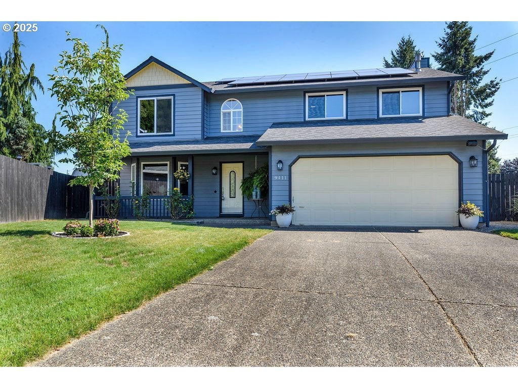 Spacious and stylish in a quiet cul-de-sac! This beautifully updated 4-bedroom, 3.5-bath home offers modern comfort and tons of extras. The renovated kitchen features stainless steel appliances, double ovens, and abundant counter space. The rest of the home includes updated bathrooms, fresh paint, and durable LVP flooring throughout. Major upgrades include a new state-of-the-art HVAC system, new roof, new windows,EV Charger and Hardie Plank siding for lasting durability and curb appeal—bringing peace of mind and long-term value. The flexible layout includes multiple living spaces, perfect for entertaining or multigenerational living. Outside, relax in the hot tub or take advantage of the 25'x25' powered shop—ideal for hobbies, storage, or your next big project. Energy-efficient solar panels help keep utility costs low. Conveniently located near schools, shopping, and freeways—this home truly has it all!