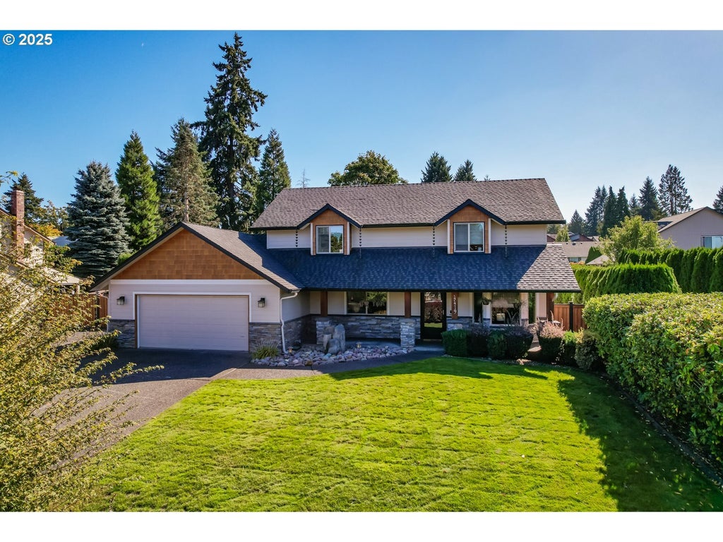 Gorgeous, & immaculately maintained 2874 sq ft, 6 bedroom home on a landscaped half acre at the end of a dead-end private road. This slice of paradise is fully fenced & very private. You will enjoy all the extra parking & the RV parking space next to the home. This home showcases pride of ownership with freshly painted fiber-cement siding, high-end vinyl windows, granite countertops, fresh paint inside, a newer roof, & more. From the moment you drive up to this home, you will appreciate the obvious care that has been put into it. It looks like it's straight out of a magazine; all it needs is a rocking chair on the stunning front porch, & you. The front sunken living room has a bay window looking out to the beautiful front yard. The spacious laundry/mud room is off the front entryway & has an interior entry into the garage. The garage itself is spotless, with an exterior door to the back patio, a tool bench, a wall of military grade storage, & dedicated storage above the garage. Your kitchen has a new disposal, a large granite counter space, & plenty of cabinets. There's also a pantry under the stairs. The sunken family room is vaulted & features a brick fireplace with a gas insert & looks out to the expansive backyard. From the kitchen/family room, you can enter the oversized patio that will be the perfect place to enjoy get-togethers with family & friends, & to enjoy your gloriously private & fenced 1/2 acre. So much space to play, garden, or for whatever you dream of. Back inside, there are 2 bedrooms on the main floor. The primary bedroom has a walk-in closet with a slider to the backyard, & bedroom #2 next to the primary has a nice-sized closet & could be perfect for a separate office. Up the stairs (with built-in nightlights), you will find 4 more large bedrooms (3 of them with built-in desks!) and another full bath. There is no lack of living space or room to grow here. This beauty checks all the boxes and is a dream to show. Even better? NO HOA!