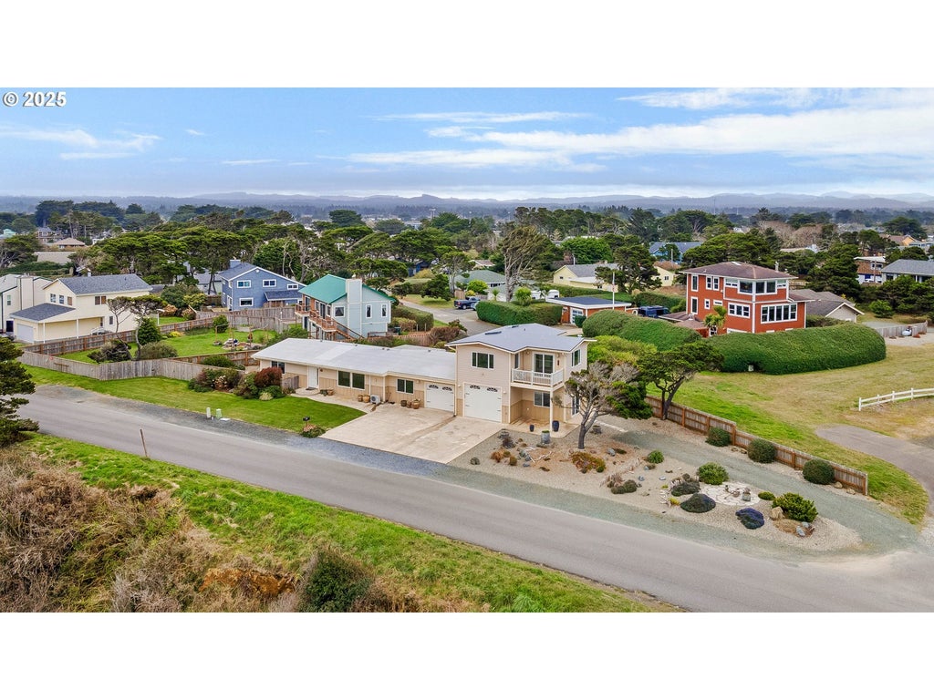 Exceptional West Bandon home with breathtaking ocean and jetty views! This 4-bedroom, 3-bath property was completely remodeled and expanded in 2017, including updates to the original home and the addition of a second garage and studio apartment.The first-floor main home was fully renovated down to the studs in 2017 and features 1,724 sq. ft. with 3 bedrooms, 2 bathrooms, a sunroom, and an open-concept island kitchen with a black stainless appliance package. Enjoy stunning views from the living areas, overlooking the jetty and Pacific Ocean.As part of the 2017 expansion, a brand-new second garage was added, offering ample storage space or room for exercise equipment, hobbies, or a workshop. Above the garage, a spacious studio apartment was constructed, featuring a living area, kitchen, dining space, bathroom, and private balcony—all with even more panoramic ocean views!Situated on nearly 1/3 acre, this property is fully fenced with beautiful landscaping, a garden tool shed, and a sauna. Located in the sought-after West Bandon neighborhood, just minutes from Old Town Bandon and multiple beach access points.Perched high on a bluff overlooking the jetty and Pacific Ocean, this home is a rare coastal retreat!
