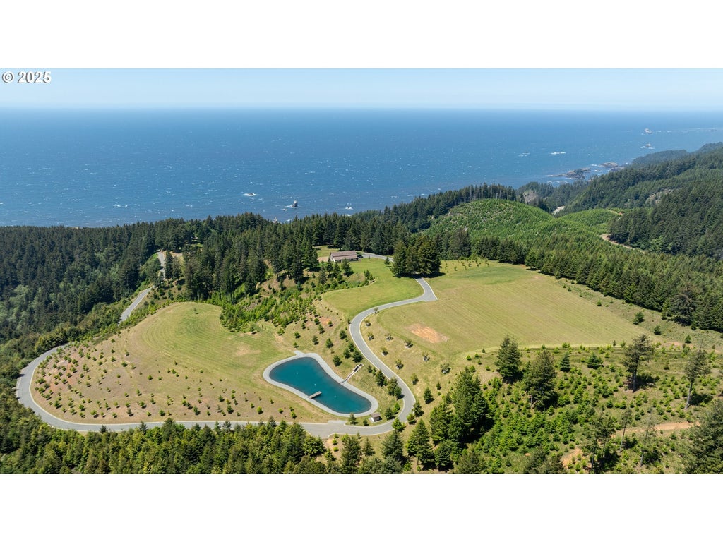 Tucked away on 179 forested acres along one of the Pacific Northwest’s most awe-inspiring coastlines, this breathtaking ocean view estate offers the ultimate in luxury, privacy, and natural beauty. With sweeping views of the Pacific Ocean and Oregon’s tallest bridge, this once-in-a-lifetime property is a sanctuary reserved for the truly discerning. A nearly ¾-mile paved drive—complete with curbs, gutters, and culverts—travels through spectacular scenery. Enjoy a 2,880 sq ft drive-through shop with four 14’H x 15’W roll-up doors, 200-amp service (expandable to 400 amps), and an adjacent finished living space—ideal as a luxe staging suite while your dream residence is built. Two exceptional homesites await: one elevated with commanding views of ocean, bridge, and nature; the other, nestled beside a shimmering 700,000-gallon pond, offers a more intimate vantage. Both are private, level, and outfitted with water and power—ready nearby for a resort-worthy main residence or luxury retreat. Abundant water includes two 40 GPM wells, natural springs, and 20,000 gallons of storage tanks. A waterfall cascades into the pond, creating a tranquil, and grandeur setting. Private trails wind through ancient trees and serene clearings, offering exploration, adventure, and solitude. Moments from iconic coastal landmarks like Secret Beach and the Natural Arches—but worlds away from the public eye—this extraordinary estate offers unmatched beauty, complete seclusion, and endless potential. A hidden coastal masterpiece—for visionaries, creatives, and those who demand nothing less than extraordinary .