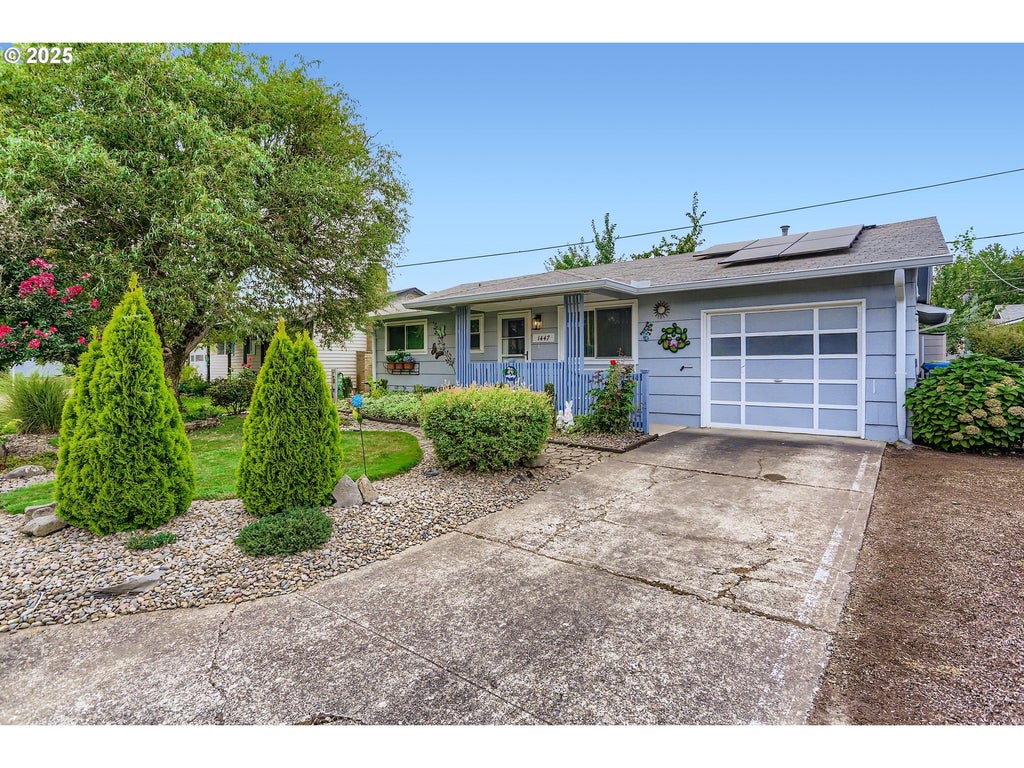Woodburn’s Senior Estates golf course community! This 2 bed, 2 baths, 1,243 sq. ft. home is full of updates: new LVP flooring, ceiling fans, countertops, backsplash, sink, faucet, whisper-quiet dishwasher, microwave, gas range/oven, newer fridge, washer & dryer. new west-side windows, sliding patio door, gutters, front/storm door, and porch railing add comfort and curb appeal. Expanded patio with gazebo, solar panels, and pro landscaping make this move-in ready home shine.