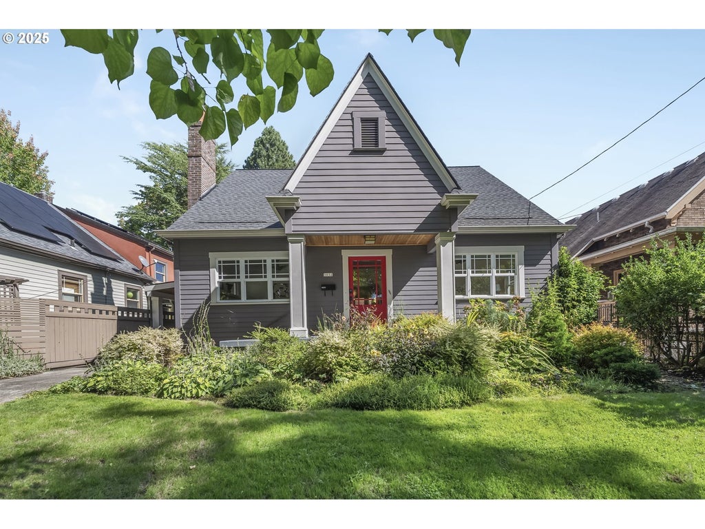 This beautifully updated Irvington bungalow offers the spaces you need in the location you want. Perched above the street with a welcoming covered porch, the home opens to a generously sized living room with hardwood floors, a classic fireplace, and charming built-ins that shine thanks to abundant natural light through the large, updated windows. The dining area flows seamlessly to the deep, covered back deck—perfect for year-round enjoyment—and overlooks a meticulously maintained backyard. The updated kitchen features new flooring, modern appliances, a stylish backsplash and a cozy breakfast nook. Upstairs, the spacious primary suite includes a spa-inspired bathroom with soaking tub, walk-in shower and a large walk-in closet. The finished lower level offers flexibility for a guest suite, family room, rental income, or multigenerational living—with a full bath and kitchenette. Outside, the backyard is a true urban garden retreat with low-maintenance turf, garden beds, espaliered apple and pear trees, plus raspberries, blueberries, currants, and asparagus. All this just one block from Irving Park and a short stroll down the “secret path” to Whole Foods, coffee shops, and neighborhood favorites. A rare find in one of Portland’s most sought-after neighborhoods. [Home Energy Score = 4. HES Report at https://rpt.greenbuildingregistry.com/hes/OR10241796]