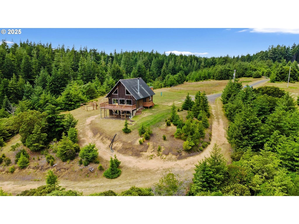 Experience serene living on over 78 acres of pristine land in this custom-built home near Bandon Dunes Golf Resort. Backing up to County Forest lands, this 3-bedroom, 2.5-bath residence showcases quality craftsmanship with pine ceilings, white cedar flooring, and large windows that capture stunning natural light and scenic views.A salmon stream runs through the property, and private trails offer the perfect setting for hiking, horseback riding, or quiet reflection. Wildlife is abundant, and a corral is already in place for horses. There's also a level area ideal for RV or boat parking. In the evenings, enjoy the distant sound of ocean waves—beaches are just minutes away.Conveniently located near Bandon’s shops, schools, and other amenities, this unique property offers privacy, natural beauty, and everyday convenience. Don’t miss this rare opportunity to own a piece of the Southern Oregon Coast’s unmatched landscape.