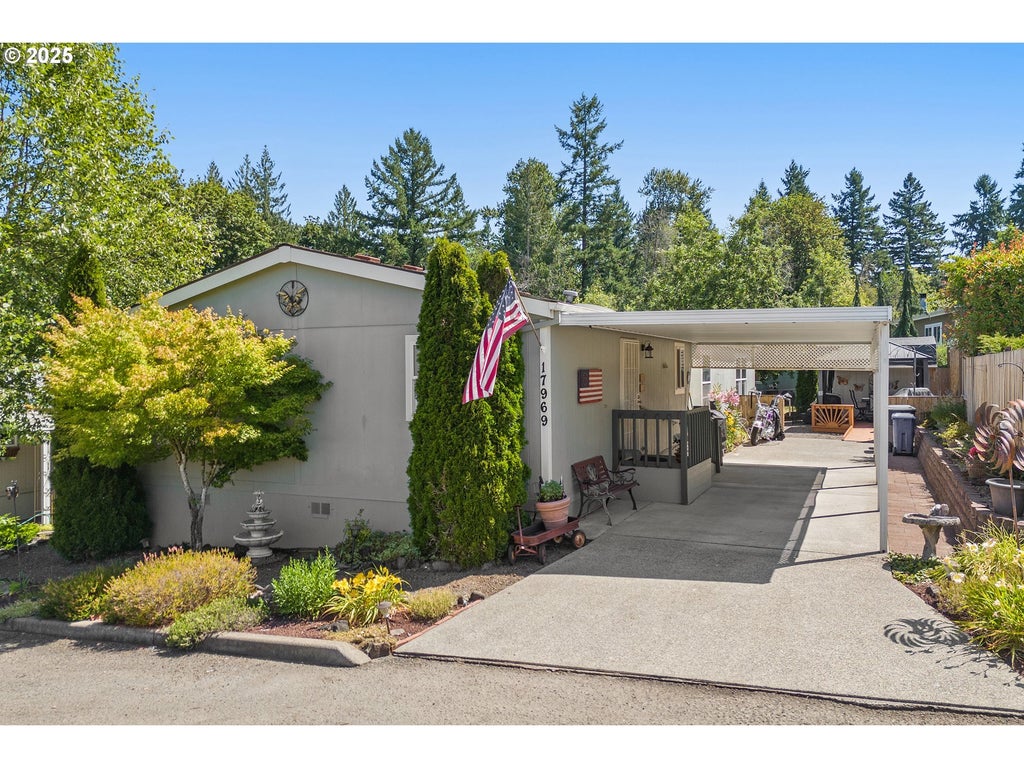 Welcome to your next home in the heart of Oregon City’s Country Village Estates! Tucked away on a quiet cul-de-sac, this beautifully updated 3-bed, 2-bath double-wide offers nearly 1,850 sqft of peaceful, comfortable living. Fresh exterior paint, brand-new carpet, and stylish lighting and blinds throughout make it truly move-in ready. Stay cool in the summer with a 2-year-old heat pump/AC and cozy in the winter with the pellet stove. The kitchen features brand-new stainless steel fridge and dishwasher, ample storage, and an eat bar perfect for gatherings. The second bathroom has been remodeled, and the electrical panel and hot water heater have already been upgraded. Outside, enjoy two storage sheds, a cabana for relaxing or entertaining, and a spacious carport. Washer and dryer included. Quiet, clean, and move-in ready. This one checks all the boxes -- Don’t miss it!!