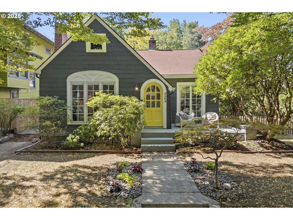 OFFER DEADLINE: 10/1/25 AT 11:00AM. Wishlist location! Nestled on a desirable corner lot beside the enchanting “Klickitat Alley,” this delightful cottage in historic Irvington offers storybook charm just two blocks from Irving Park. Inside, a warm and welcoming circular floor plan features newly refinished wood floors, a tiled fireplace, and a spacious dining room with original built-ins. The bright kitchen has a convenient mudroom that opens onto a back deck—an ideal spot to sip your morning coffee surrounded by romantic gardens.The main level includes two generously sized bedrooms and a full bath, offering comfortable living on one floor. Upstairs, the attic space—complete with skylight and wood floors—provides excellent storage or creative potential. The mostly finished lower level, with updated plumbing and electrical, includes a second full bath and flexible space, ideal for transforming into a family room or home office. A detached garage and carport offer ample off-street parking and plenty of room for gear and equipment. Don't miss this sweet little jewel box! [Home Energy Score = 1. HES Report at https://rpt.greenbuildingregistry.com/hes/OR10241916]