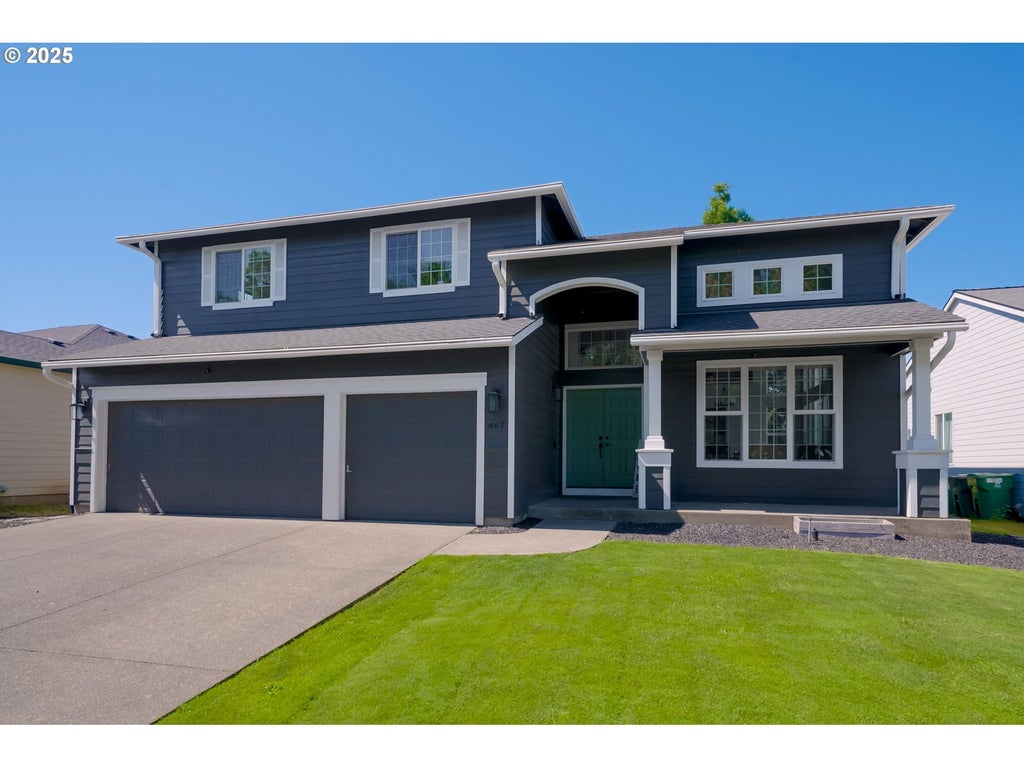 Experience elegant living in this 4-bedroom, 2.5-bath, 2,770 sq ft home backing to the 14th fairway of the OGA Golf Course. Features include a grand entry with 18-ft ceilings, custom gourmet kitchen with granite island, and a spacious family room. The vaulted primary suite offers a remodeled spa-like bathroom. Enjoy sunset views from the new deck with sleek metal railings. Includes a 3-car garage and premium golf course location. Ideal for comfort, style, and unbeatable views! Convenient to freeway access, the Woodburn Outlet Mall, and nearby parks.