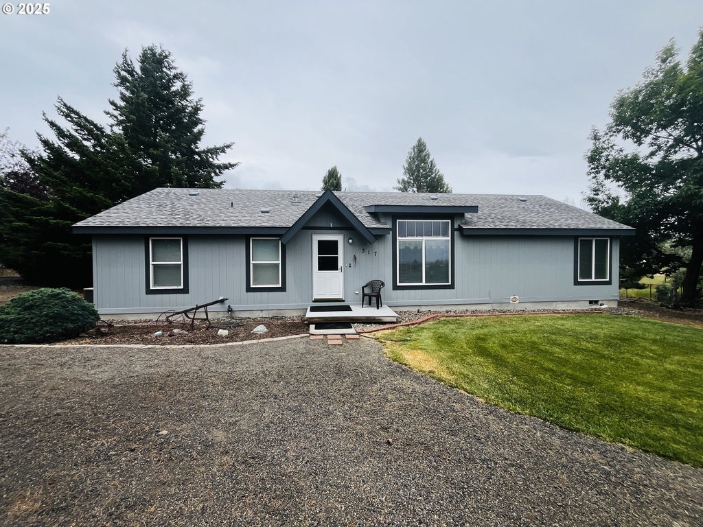 This well-maintained home on a large lot boasts a park-like setting complete with mature Redwoods, Doug Fir, Blue Spruce, Ponderosa Pine, and other beautiful landscaping! Sip coffee on the patio and enjoy the view of Mount Hood! The fenced area with a shed could hold horses or keep the garden safe from deer. There is an additional shed for all your tools. Inside the home, the vaulted ceilings and open floor plan provide a great space for entertaining or enjoying a cozy night in. The primary suite has a walk in closet and en-suite bathroom with a large bathtub and separate shower. The other two bedrooms are on the other end of the house, providing privacy and quiet. If you are concerned about winterizing the home, worry not! With the flip of a switch, the heat tape around the pipes will keep them from freezing- no crawling under the house! Pine Hollow Lake is a short drive away for swimming or boating, as is Rock Creek, Mount Hood National Forest, and Maupin for River recreation.