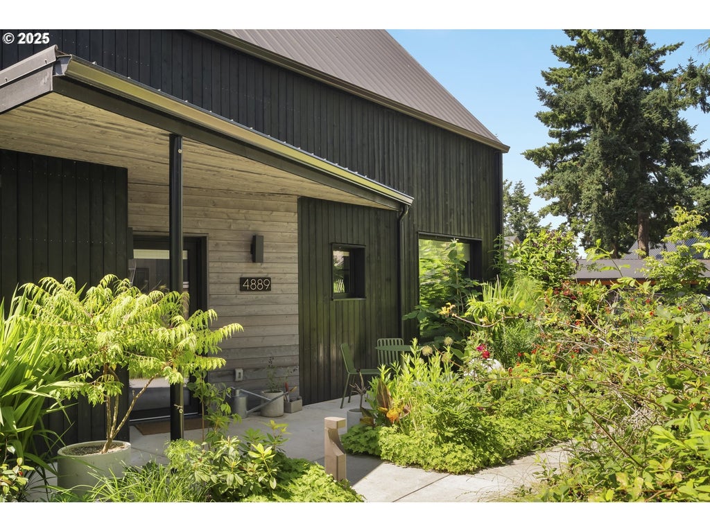 This beautifully designed, sunlit home in Going Street Commons offers modern comfort, a thoughtful layout, and high-performance features for energy-efficient, healthy living. Featuring a coveted, main-level primary suite, upper level bedrooms for privacy and flexibility, polished concrete flooring, real wood cabinets and elevated finishes throughout. Built by Green Hammer and meeting Earth Advantage Platinum standards, the home includes an 8.36kW solar array, delivering rare Net-Zero energy performance in this all-electric home. An advanced air-washing system with HEPA and carbon filtration ensures superior indoor air quality, supporting both wellness and sustainability. Just off the living room and through full-lite doors is your private garden with custom landscaping, including a living green fence, perennials, and raised beds featuring apple, persimmon, blueberry, currant, strawberry, rhubarb, and more. Your personal parking space is nearby and EV-ready! Located in Portland’s Cully neighborhood, Going Street Commons is a community of 11 homes on 1.3 acres, designed to reduce environmental impact. Each residence includes a private yard and access to shared green space, common tool shed, and a thriving community garden. The Cully neighborhood offers myriad local parks, plus plentiful eats and shops along both the 42nd Avenue business district and nearby Beaumont-Wilshire. Going Street Commons is a model for sustainable urban living grounded in health, connection, and environmental responsibility.
