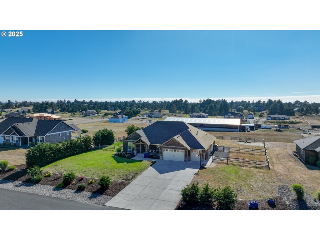 Beautiful one story home on 1-acre in Polo Ridge! This spacious property features 4 bedrooms plus den/office, 3 full bathrooms, and an open living area with custom built-in shelving, storage, and a gas fireplace. The open kitchen is equipped with brand new stainless steel appliances, double oven, coffee bar, and a walk in pantry. The primary suite offers a walk-in closet, double sinks, and a jacuzzi tub. Outside, enjoy the pasture views and ocean sounds from the fenced backyard while relaxing in the hot tub or sitting under the covered patio. Additional amenities include a 3-car garage, a separate fenced dog run area, and tons of natural light throughout. Call to schedule your showing today!