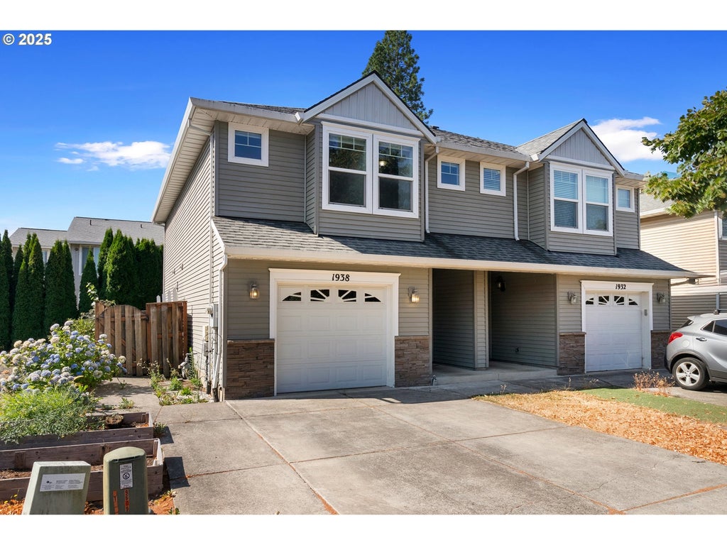 NEW PRICE! In the heart of Forest Grove with quick access to Pacific University, downtown shops, parks, and transit options. This 3-bedroom, 2.5-bath property offers a rare combination of comfort, privacy, and style with NO HOA and an open community space (vacant lot) beside the home that adds a sense of spaciousness. Inside, the main level features a true great room layout that combines the kitchen, dining, and living areas into one seamless space. The kitchen is both functional and stylish, with stainless steel appliances, a dedicated pantry, and an eating bar perfect for quick meals or casual conversation. A gas fireplace in the living room adds a cozy focal point for gatherings, while the convenient updated half bath on this level makes entertaining easy and accessible. Upstairs, the primary suite features a walk-in closet with build-in closet organizer and an en-suite bathroom, complete with a walk-in shower wrapped in marble tile and a jetted tub. The second and third bedrooms each feature walk-in closets, built-in cabinets with window benches, and custom designer paint giving the space an elevated and personalized feel that stands out from the typical neutral palette. A full hall bath serves the secondary bedrooms, and the laundry space can be easily accessed from each bedroom. Outside, a private fenced patio with attractive pavers, great for grilling or relaxing outdoors. Additional highlights include an attached one-car garage with storage shelving, a newer 50 gallon hot water heater, SMART Home features: Nest thermostat and Ring doorbell, and raised beds for the gardener. Roof certification and pre-list inspection completed.