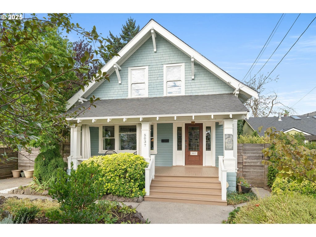 Welcome to a home where historic charm meets modern peace of mind. Tucked right into the middle of one of Portland’s most dynamic and desirable neighborhoods, this 4-bedroom, 2-bath bungalow is just one block from the excitement and convenience of Alberta Street – Alberta Co-op Grocery, Tin Shed Cafe, Case Study Coffee, and public transportation are right outside your door. From the moment you step inside, you’re greeted by stunning period details: original hardwood floors, well preserved built-ins, and vintage accents. Yet the home has been thoughtfully updated for today’s living, with earthquake retrofitting, updated plumbing, modern electrical w/ new panel, and double-pane windows that preserve the classic wood frames. The bright living room offers the perfect place to relax and entertain, while the distinctive dining room provides a place to share meals, surrounded by period correct, William Morris wallpaper and a gorgeously preserved hutch. The light and bright kitchen is complete with soap stone countertops, a large farmers sink and modern appliances. On the main floor, you’ll find a bright bedroom with an en-suite stylishly updated full bathroom. The upper level offers three generously sized bedrooms, each filled with natural light and thoughtfully designed walk-in closets with built in storage— an uncommon luxury for a home of this era. An updated full bathroom also blends classic style with modern finishes.The magic continues outdoors— lush landscaping, a covered outdoor seating area, and a detached workshop create your own urban sanctuary, whether you're hosting guests or enjoying a quiet morning in the garden. Additionally, the high ceilings in the basement offers great flex space and the perfect opportunity for expansion. This is more than just a home—it’s a rare blend of history, comfort, and unbeatable location (walk score 95, bike score 100!) in the heart of the Alberta Arts District!