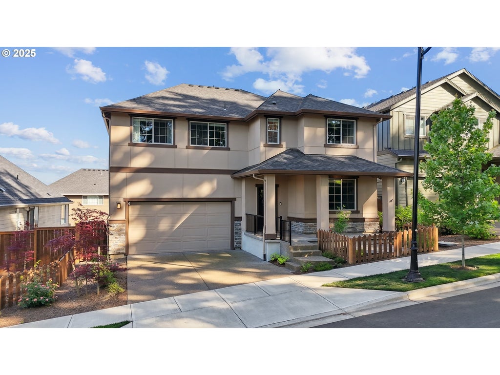 Located in one of Wilsonville’s most sought-after neighborhoods, this 2023-built 5-bedroom, 3-bath home offers over 3,200 square feet of thoughtfully designed living, high-end finishes throughout, and peek-a-boo views of Mt. Hood that make morning coffee on the deck feel like a retreat.Step inside to an open-concept main level filled with natural light. A cozy fireplace anchors the great room, while the chef-inspired kitchen boasts high-end stainless steel appliances, an oversized island, and a walk-in pantry - ideal for hosting or everyday ease. A private main-floor bedroom suite offers flexible space for guests or multigenerational living.Upstairs, the luxurious primary suite features a spa-like bath with soak tub, separate walk-in shower and a spacious walk-in closet. Three additional bedrooms - one oversized with its own walk-in - plus a full bath and laundry room provide the perfect layout for both comfort and functionality.Outside, the generous backyard is a blank canvas—ready for your garden, outdoor kitchen, or play space. Just steps away, you’ll find a dog park, community green spaces, and trails leading to Graham Oaks Nature Park. Villebois is packed with amenities including pickleball and tennis courts, a skate park, splash pad, and seasonal events like farmers markets and food truck nights. With easy access to I-5 and highly rated schools, everything you need is right here.More than just a home, this is a lifestyle rooted in connection, nature, and everyday ease.