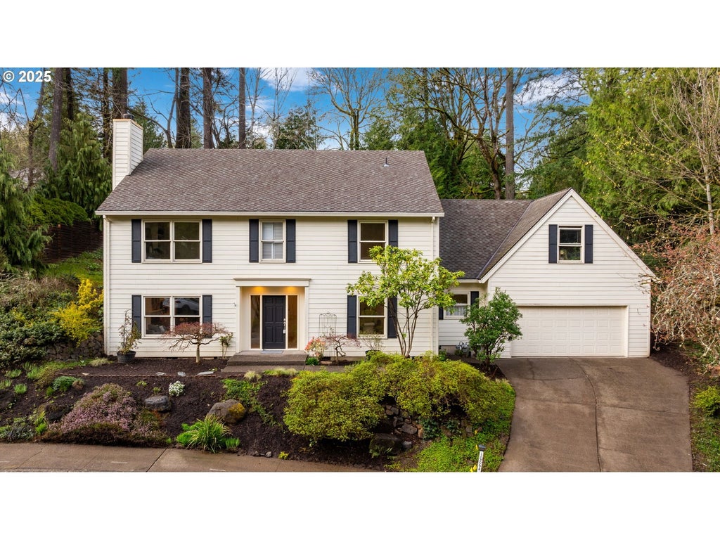 This stately home sits above the street on a woodsy lot in Marshall Park. The highly sought-after neighborhood has just 15 houses that share four green spaces and even a duck pond! The Traditional Colonial Revival offers enough space to be social or simply enjoy nature. Entertain in the living, formal dining, and family rooms, or simply recharge in the spacious bedrooms. Airy eat-in kitchen features a new refrigerator, trash compactor, and opens to the peaceful backyard. Ideal live/work balance with an office/den on the main level and adjacent full bathroom. Warm hardwoods in the entry, kitchen, and family room. Brand new carpet everywhere else and fresh interior paint throughout. Upstairs, the sun-drenched primary suite has big windows, built-in bookshelves, a walk-in closet, soaking tub, and shower. Two other bedrooms upstairs, one complete with another walk-in closet. In fact, there’s an impressive amount of storage throughout the whole house. The partially finished bonus room over the garage could be the perfect playroom, craft studio, or extra hangout space. Outside, welcome spring on the expansive new composite deck surrounded by a lovely array of garden boxes. All of this just minutes from Downtown Portland, Lake Oswego, and trails in Tryon Creek State Natural Area. [Home Energy Score = 3. HES Report at https://rpt.greenbuildingregistry.com/hes/OR10236941]
