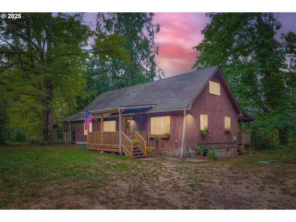 Close in country living! This farmhouse has lots of charm and character. Rustic wood beam ceiling, large living room with wood stove, laminate floors, spacious kitchen and all appliances included. Wrap deck and front porch with a swing. Large covered deck off primary bedroom. You'll love this land, as it's just shy of 7 mostly flat acres. Very private with a treed canopy. Little trail through your woods to a private pond. Free eggs! Chicken coops with chickens can stay! Well and Septic. Septic just inspected. Just outside of Hockenson but lower taxes in Battle Ground. Come see this one today!
