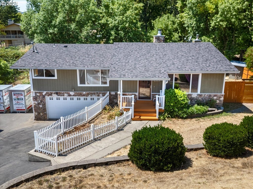 Charming 3 bedroom home in highly desired east Sutherlin neighborhood. This home is positioned at the top of a very nice street up against the forest providing incredible privacy, views, and country feel. This home offers 3 bedrooms, 2 full bathrooms, large kitchen and dining, private laundry space, large stone wood burning fireplace in the living room, separate downstairs family room that leads to a large covered patio with skylights, 2 car garage, and RV parking. Recent improvements include new roof in 2024, fresh paint, some new floors, new solid wood trim, updated master bathroom, newly graded back yard with French drains, and new fencing. The kitchen has loads of storage with soft close drawers, Corian counters, and abundant workspace. Lots of space inside and out with great outdoor entertaining no matter the season. Call today to schedule a private tour.