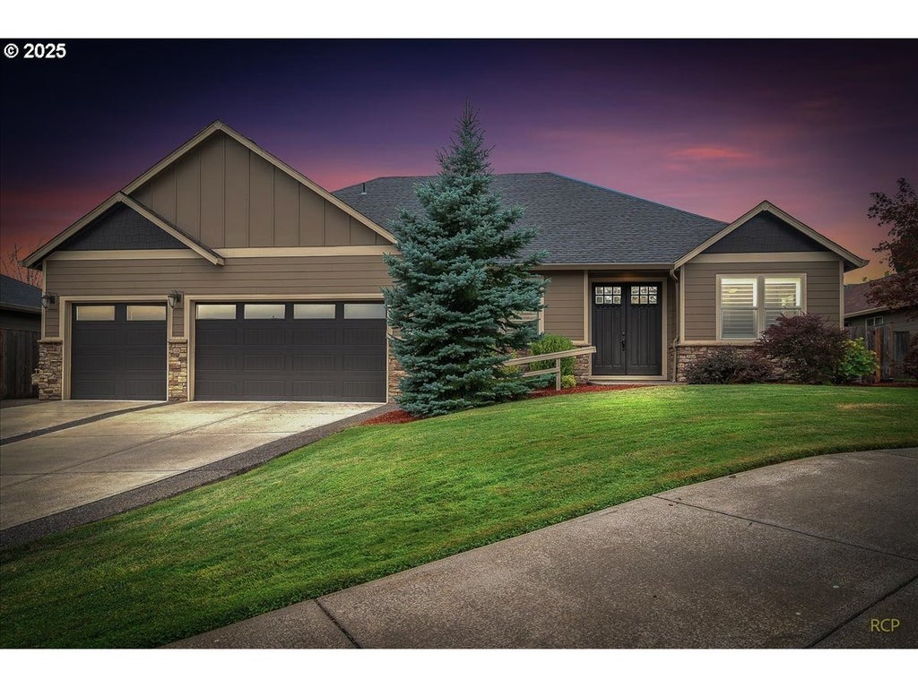 Stunning Single-level, open-concept 3 bed, 2 bath home with gorgeous hardwood floors throughout, extra wide hallways, ceiling fans & soaring 9' ceilings. A spacious great room features custom built-ins, floor-to-ceiling stone mantel & a wall of windows flooding the space with natural light. The fabulous chef’s kitchen offers granite counters, stainless appliances, gas range w/ copper hood, built-in oven and microwave, Frigidaire Pro side/side Refrigerator, travertine backsplash, huge island with eating bar & walk-in pantry. The formal dining room with wainscoting could also make the perfect home office. The primary suite features new heated tumbled travertine floors, updated shower, and custom closet. Outdoors, enjoy a private backyard oasis with a large covered patio, wood burning fireplace, & a brand-new built-in grill BBQ w/ stone surround & a classic streetlamp for ambiance. Raised beds, raspberry bushes, grapevines, & lush landscaping complete this entertainer’s dream retreat.