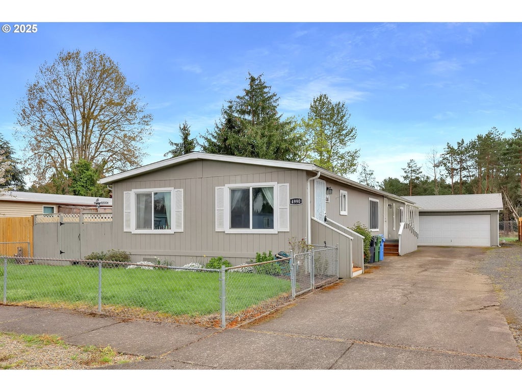 "Open House Saturday August 23rd From 12-2" Welcome to this cared for home situated on a generous, fully fenced lot with ample space inside and out! Enjoy plenty of parking- including RV parking, lengthy driveway and a 23 x 35 detached, finished two-car garage with built-in storage. This wheel chair accessible home has consistent laminate flooring throughout, large windows for natural light, and three nicely sized bedrooms. The primary suite offers a double closet, en suite bath, and nook perfect for a home office or creative space. The kitchen is functional with built-in appliances, double oven, a breakfast bar, and has open flow into the dining area. You'll love the convenience of the indoor laundry room, complete with counter space and extra storage. Step outside and enjoy the front and backyards, both fully fenced. The backyard includes a covered porch and a handy storage shed for your tools and extras. Plus, home backs up to BLM land—offering added privacy and open space. Take comfort with a newer roof as of 2020. This home has room to live, work, and play. Schedule your showing soon!