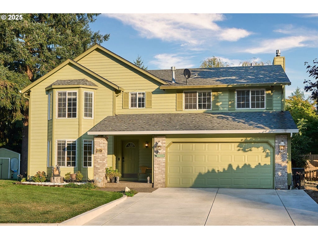 Take a look at this almost a quarter of an acre property backing green space right in town! Relaxation in the back yard is easily found while surrounded by mature arborvitaes and a beautiful weeping willow tree. Plenty of room for all types of yard games while quality time can be made hanging out on the large covered patio. This property also has an amazing 15x20 workshop with electricity running to it along with two different sheds for extra storage. Three-year-old roof, five-year-old siding, a widened driveway to accommodate an RV was done last year, and a newer HVAC system installed two years ago. Now let's take a look inside! When you walk in, you are greeted by the formal living and dining room; large windows allow natural light to flood in from both sides. Keep on going and you will come to the kitchen with a gas range stove, stainless steel appliances and a pantry. Just beyond that is the second living room with the original brick fireplace, updated with a gas insert. Upstairs you will find the four bedrooms and two full bathrooms. The primary bedroom, bathroom and walk-in closet are all very generously sized! The fourth bedroom is ginormous as well and could easily be used as an extra flex space or bonus room. The possibilities for this home are endless and with no HOA you can upgrade to your heart's content!