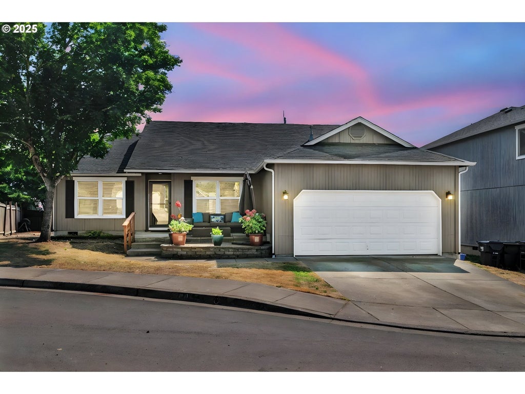 Tucked at the end of a quiet cul-de-sac, this inviting single-level home offers a comfortable, functional layout in a peaceful neighborhood setting. Thoughtfully updated in 2020, the home features modern finishes throughout, including luxury vinyl plank flooring, new light fixtures, and fresh paint on every interior surface, from walls to ceilings. The light-filled living area flows seamlessly into an open-concept kitchen updated with granite countertops, stainless steel appliances, and a gas range, perfect for everyday living and entertaining. A cozy bonus room just off the main living space offers flexible use as a home office, playroom, or den. The spacious primary suite boasts an ensuite bath with dual sinks, updated fixtures, and a generous walk-in closet. Both bathrooms include modern vanities, faucets, and toilets installed during the renovation. Outside, enjoy the low-maintenance landscaping with fresh bark mulch and a deck ideal for relaxing or hosting. The exterior was professionally painted in 2019, and the home is just several hundred feet from Quartz Park, offering nearby green space and recreation. Schedule a tour today!