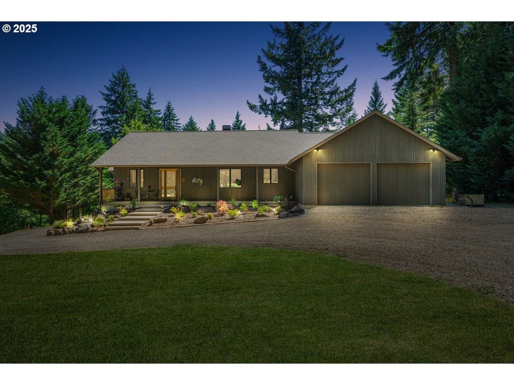 Surrounded by mature trees and lush landscaping, this custom-built gated estate offers a rare blend of luxury, privacy, and functionality just minutes from the Banks-Vernonia State Trail. Set on 9.61 peaceful acres, this one-of-a-kind property features a meandering creek, back up generator, a 36x48 workshop with loft storage & 200 amp breaker, a separate 20x48 covered storage building, outdoor fire pit area, interior fire sprinkler system, remote controlled security gate, and a striking cedar deck that invites you to relax and take in the scenic surroundings. Inside, this home is adorned with upgrades including over 14' high vaulted ceilings in the great room and 9' ceilings throughout that invite an abundance of natural light, three bedrooms on the main floor, Pella wood clad casement windows, rich Peroba South American hardwood floors, solid core Knotty Alder doors, three gas fireplaces, wine cellar and custom clear alder cabinetry throughout. The chef’s kitchen features Crema Bordeaux granite, a DCS gas cooktop with Dacor wall oven, a second Frigidaire Speed Bake oven, full-height alder cabinets with soft-close drawers, and clever corner storage. Retreat to the luxurious primary suite with fireplace, walk-in closet, sliding door to the outside, heated bathroom floors, Bain Ultra air tub, and a spa-style shower with dual Grohe heads, body sprays, and bench. All 3 full baths feature natural stone finishes and full-height mirrors. The main floor 3rd bedroom is oversize & could double as an office or potential to enlarge the primary suite. The daylight lower level features a spacious family room, large bedroom, and full bath—with views of the picturesque landscape—ideal for multigenerational living or a private guest suite. This thoughtfully designed estate is a serene and practical retreat that checks every box for comfort, style, and country living at its finest.