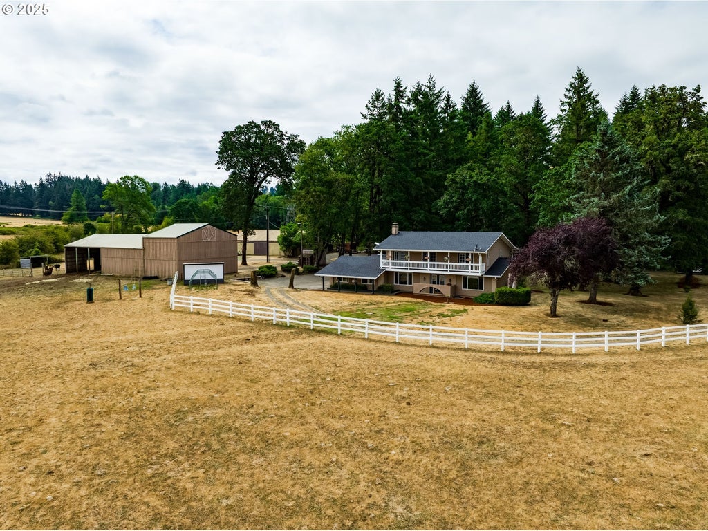 Discover the perfect blend of country charm and modern convenience at 26718 Cantrell Rd! Just 12 minutes from town, this serene country retreat offers sweeping views of 26 acres of pastureland, a seasonal creek, two ponds, grazing cattle, and majestic oak trees.This beautifully updated home offers nearly 3,000 sq ft of living space with 5 bedrooms, including a versatile large bedroom on the main level with a private entrance—ideal for guests, multi-generational living, or short-term rental opportunities. Inside, enjoy a bright, open layout featuring an updated kitchen with granite countertops, tile backsplash, and new stainless steel appliances. Expansive balconies span the upper level, accessible from two bedrooms and providing peaceful views of the surrounding countryside. The spacious primary suite includes its own balcony, a double vanity, and a large tiled walk-in shower. The property is ready for all your hobbies and rural lifestyle needs with a 36x96 barn offering RV and equipment storage plus open covered space for livestock, and a 40x60 shop with power, ample storage, built-ins, and a heated storage room. Whether you’re dreaming of a hobby farm, homestead, or simply a peaceful country lifestyle, this property delivers—with a brand-new roof just installed.