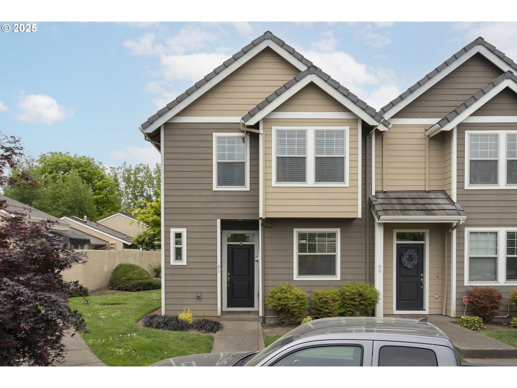 Built in 2016, this well-designed 2-bedroom, 2.5-bath home offers 1,322 square feet of light-filled living space with an efficient and functional layout.The main level features engineered hardwood floors and an open-concept kitchen with stainless steel appliances, quartz countertops, a gas range, and a breakfast bar. A dedicated entryway and convenient half bath complete the first floor.Upstairs, both bedrooms are spacious ensuites. The primary suite includes a walk-in closet and double sinks, while the second bedroom also offers a private bath and generous storage.Additional features include high ceilings, mini-split heating and cooling, a tankless water heater, a detached garage, and a fully fenced yard with patio. Enjoy low-maintenance living with HOA-covered exterior maintenance, landscaping, water, sewer, garbage, and access to the community pool and common areas.Located near parks, trails, top-rated schools, and just minutes from I-5 and Wilsonville’s shopping and dining, this home blends comfort, convenience, and value.
