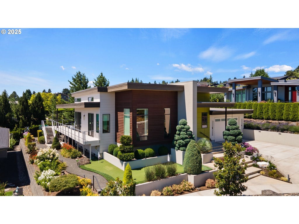 This One-Level modern masterpiece delivers thoughtful design and a lifestyle that blends ease, function, and inspiration. Built in 2018 as a custom residence, every detail of this 2,904 sq. ft. home has been crafted for both everyday living and effortless entertaining. Inside, you’ll find soaring ceilings, a dramatic pivot glass front door, solid walnut custom cabinetry, and a great room showcasing views of the Columbia River and downtown Portland’s city lights. The chef’s kitchen features a 14-foot island with a waterfall edge, designer lighting, and high-end finishes throughout. Smart home technology, a whole-house surge protector, and network wiring provide peace of mind and modern convenience. The primary suite is a true retreat, with a spa-worthy bath that includes a curbless glass shower, a soaking tub beneath a crystal chandelier, dual dressing rooms, and sound-dampened window. There are also two additional Bedrooms plus an Office/Den. Each bathroom is elevated with floating cabinetry, marble, and custom tile work. Step outside to enjoy low-maintenance luxury: a partially covered tiled patio, retractable awning, patio heaters, a ceiling fan, and expansive spaces designed for year-round living. Play on the artificial turf game field, practice on the 3-hole putting green, or unwind among raised garden beds and perennial landscaping. As the evening sets in, the home glows with permanent exterior LED holiday lighting that changes with the season. Additional highlights include a high-efficiency two-zone HVAC system, a tankless water heater, smart irrigation with a Wi-Fi rain gauge, extensive under-home storage, and an oversized garage with 10x16 garage door and built-in cabinetry. Verified as a High-Efficiency Star Rated home and engineered to withstand winds up to 130 mph, this residence is as solid as it is spectacular. Come and See Luxury, efficiency, and livability just minutes from PDX and the Vancouver Waterfront.