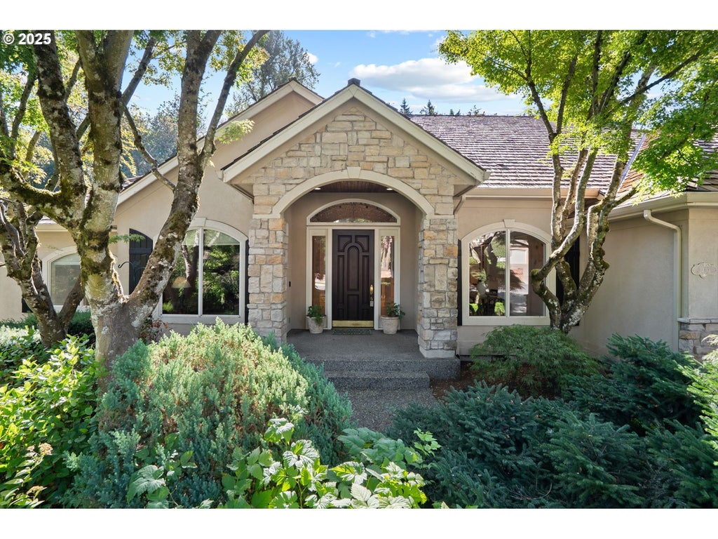 Easy living with ample spaces for both play and relaxation in this custom, sophisticated Barrington Heights beauty. The main level, features day to day, one level ease, with your primary living suite and living areas. The home was meticulously crafted with quality and attention to detail, and features elegant crown molding, solid wood doors, custom built-ins, oak hardwood floors, and an array of bespoke millwork and designer finishes. The beautifully updated kitchen and family room are thoughtfully designed for comfort and style with a grand island, quartz countertops, stainless steel appliances, walk-in pantry, butler’s pantry, a brick fireplace and a dining nook. There are multiple areas to entertain in, including a lovely, walk-out tech deck that overlooks the expansive lot which is something to behold. The main yard is thoughtfully designed by a local landscape architect and contains mature landscaping, a patio and grass; all fully fenced. Outside the fence is the back side of the lot, very private and peaceful. The lot stretches across a seasonal creek and up the hill and is ready for next level entertainment and fun; it is complete with a sport court that can be used for games or as an additional dining area adding ambience to savor alfresco dining. Inside, the daylight basement area rounds out the living spaces. Enjoy 3 generous sized bedrooms with walk-in closets, 1 full and 1 half bathroom, a second laundry room, a large living room, a wet bar and an abundance of additional storage!From the home's elevated position, the sweeping views of lush greenery and seasonal color add versatility and charm with mornings graced by the gentle sounds of nature, and evenings offer tranquil ambiance. This beautiful home is conveniently located just a short distance away from Tanner Creek Park, tennis/pickleball, restaurants, shops, and a mile from the Willamette Area, Willamette park & river access. Plus: plumbed for EV charger, whole house surge protection.